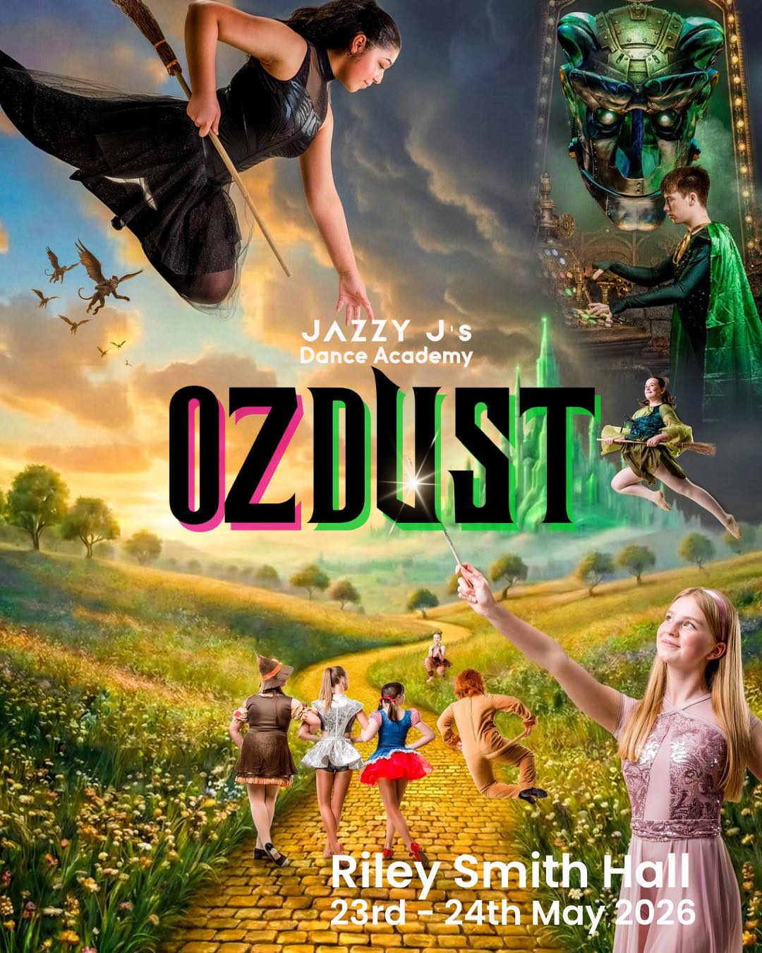 We’re very excited to announce that our next Jazzy J’s show is called Ozdust – inspired by the magical ballroom from Wicked! Get ready to step into a world of gravity-defying fun as we bring the energy of Oz to the stage at the Riley Smith Hall.
